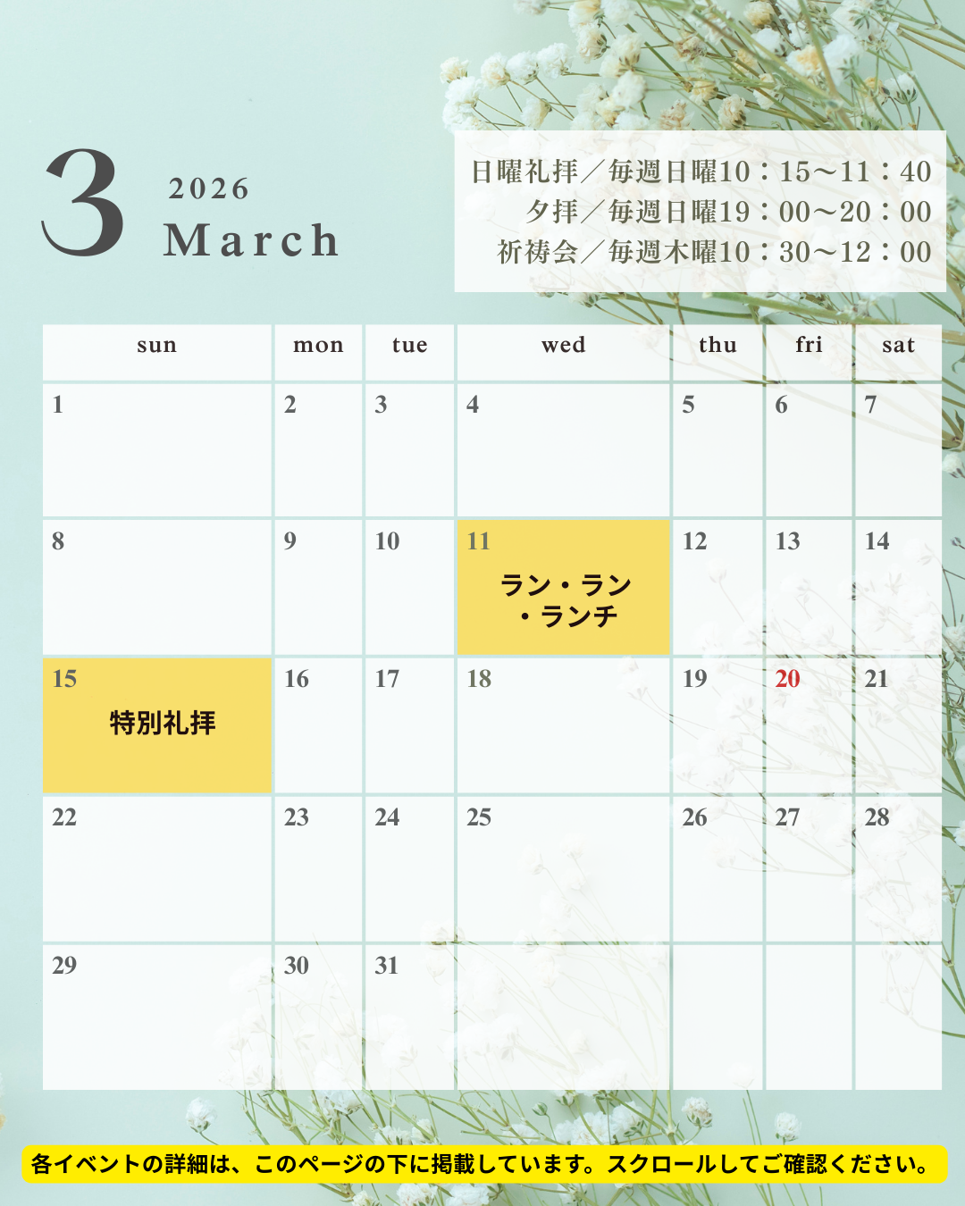 特別礼拝のご案内 とき:2026年3月15日日曜日 10:15〜11:50 ところ:北栄キリスト教会礼拝堂 皆さんのお越しをお待ちしております。 初めての方も歓迎いたします。